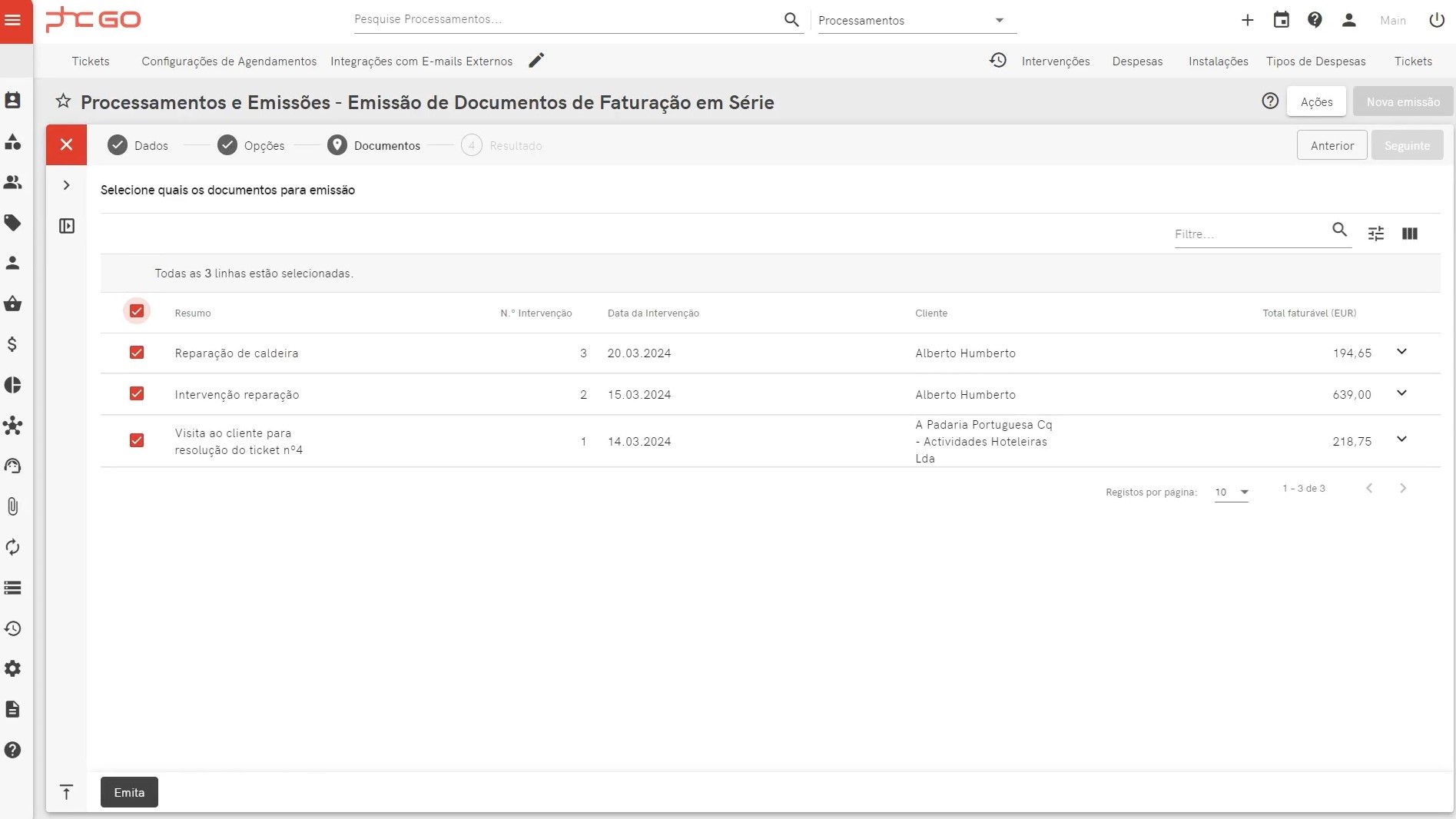 3. Como faturar todas as intervenções da semana e custos relacionados?